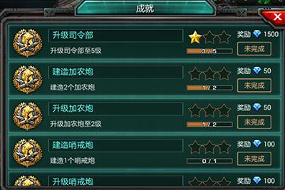 相对一些比较简单的成就,例如建造加农炮,升级加农炮这些都是比较简单,消耗资源比较少的,可以提前去完成,这样就可以获得第一批钻石啦,更多小技巧需要玩家去游戏里发现哦~ 建议钻石用在刀刃上,比如加速升级之类哦。