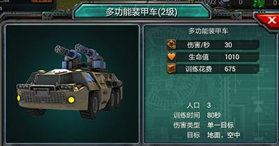 而多功能装甲车的属性远比联盟军的属性高很多了,而且不但空陆两攻,而且行动迅速,属性如下图: