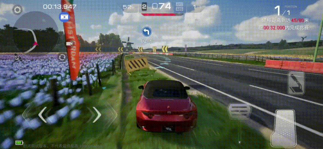 不要小看抓地过弯,打开声音仔细感受,走线带来的体验感并不会输给漂移。在前方出现弯道提示时,可以根据指示的弯道角度选择合适的过弯方式。