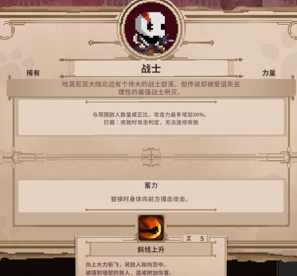 重点来了,他是个没有什么控场能力的输出头骨,保命技能弹反消费是25,冲撞还好10出头,但这就造成了你不是为了这一次技能攒怒气就是为了下一次技能攒,横向对比史诗武士,弹反直接给5层,一闪打中的怪物是不能动的,高下立判