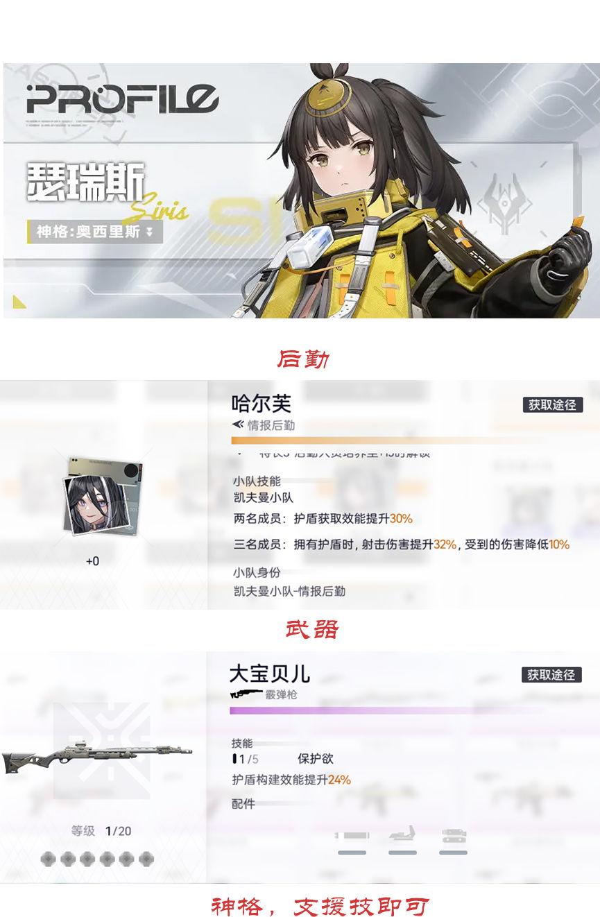 狙击队:主C咎冠或雨燕,四星推荐茉莉安,咎冠下位,有着超强的单体伤害,高名可以秒杀对手。后台建议安卡希雅和肴。安卡的支援技减速控怪减少空枪几率,也防止敌人突进,肴的奶妈作用是队伍生存的后盾支援。平民阵容培养说明SSR角色的命座升级碎片是可以通过每日任务获取的,一天四个,无论是平民还是氪金大佬,每天只有四个。