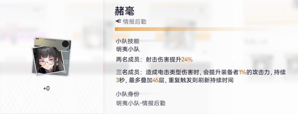 特长:攻击力提升— 暴击伤害增加— 电击伤害提升