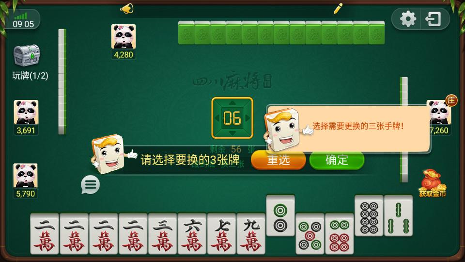 ●换三张:开局不需要换三张;