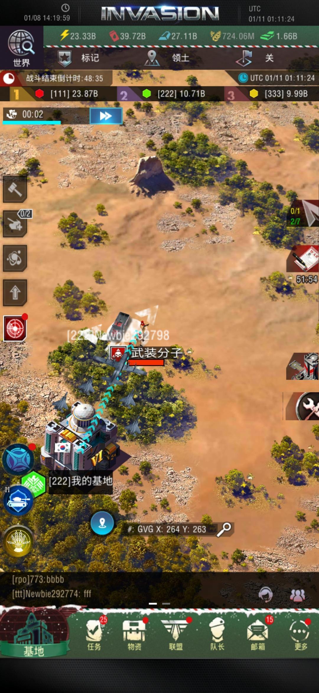 随着游戏进程的不断推进,在你所在的地图逐渐人满为患之后,你的首选策略应当是稳扎稳打——毕竟在《战地风暴》中,玩家采集资源时会有遭到攻击的危险,而且如果你在资源点被击败,那么派去采资源的部队会直接灰飞烟灭,连回到修理厂重整旗鼓的机会都没有,因此建议大家量力而行,可以采取将部队一分为N同时占领多个资源点的方式,同时手头上也可以留一部分战斗力以备不时之需。另外,目前许多联盟会给新人发邮件提醒,邀请大家迁往某个固定地点,一定程度上也是为了降低被敌人围攻的几率,各位可以尝试一下。