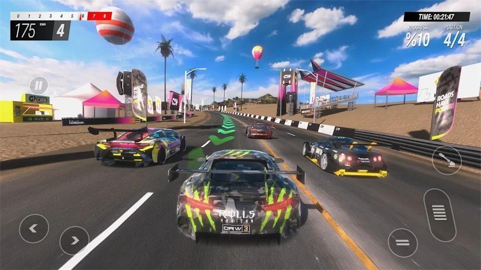 2、关卡设计丰富多样,风格独具特色,让你沉浸在不同的赛车场景中。
