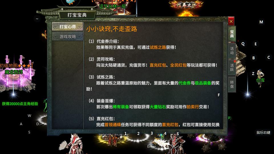 打怪升级:游戏中最基本的玩法,不断地打怪升级可以提高角色的等级和属性。建议选择适合自己的地图和怪物,不要盲目追求高等级的怪物,否则容易被秒杀。