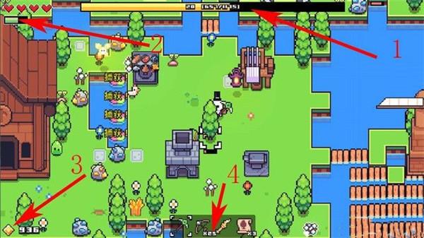 如下图箭头4所指,这里道具栏,你的武器和道具都会显示在这里。