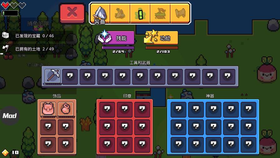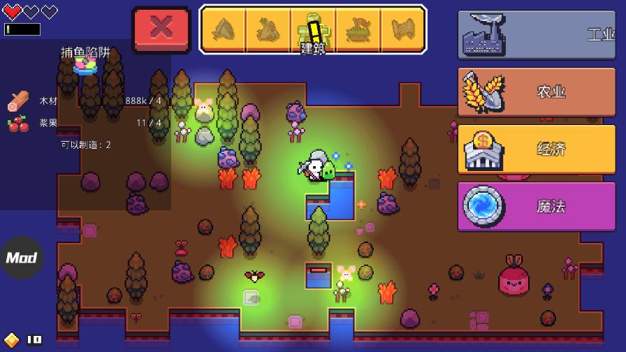 Steam上人气非常主的一款自由创建岛屿的像素风种田游戏,浮岛冒险Forager安卓最新版,游戏中拥有丰富的玩法,将探索,种田,收集,建造,多人联机等多种玩法融合一起,玩家开局一把镐,从零开始建造,在游戏中体验建造的成就感。