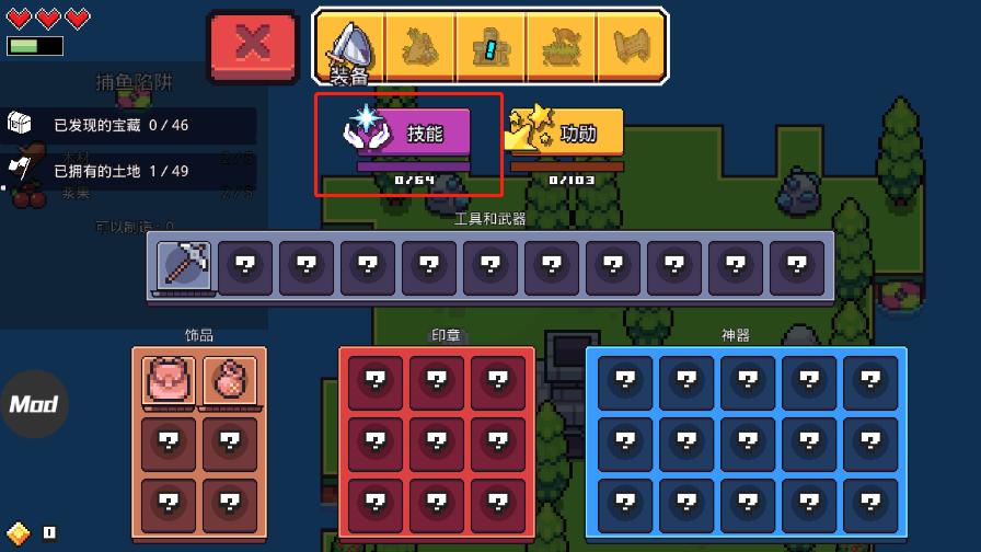 在游戏的过程中你可能会注意到,伴随着每次升级,你都会获得1个技能点,使用技能点可以学习一个技能。通过学习新技能可以解锁建筑、提升物品栏上限、减少资源消耗、提升收益等,是让你变得更强大的关键系统。