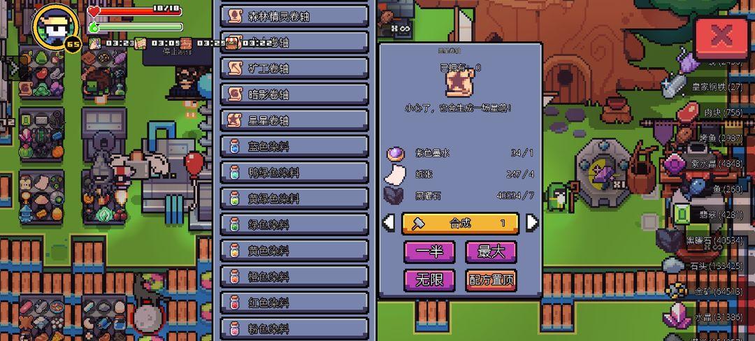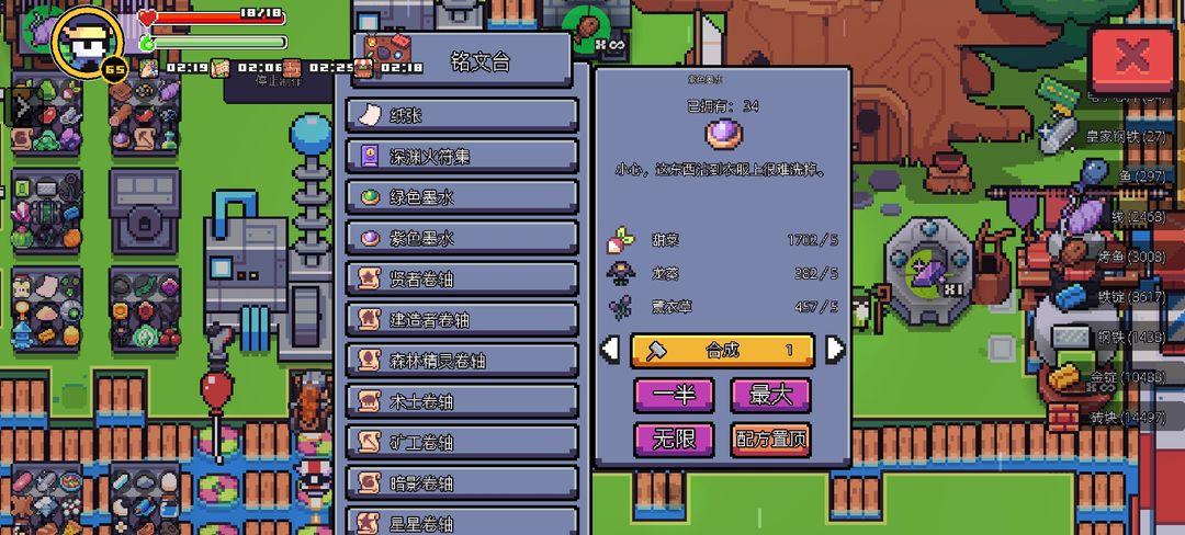 而造这张卷轴又要大量花和木头,所以前期多种花,花种可以用风车做,种的时候用洒水器浇灌,洒水器的浇灌范围为周围8格
