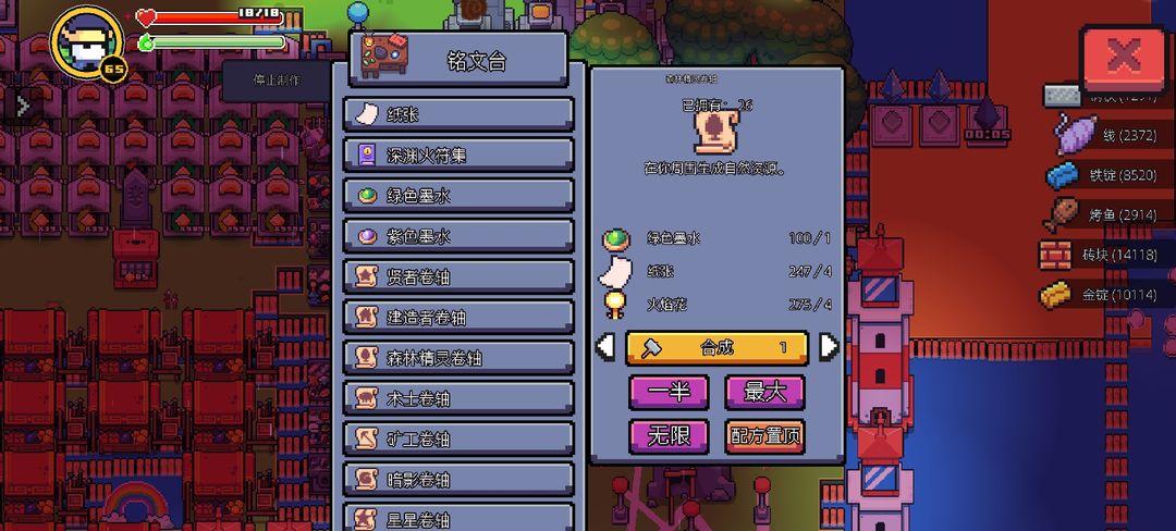 制造森林卷轴还要火焰花,需要在平原下面的地区使用森林卷轴获取,所以第二建造